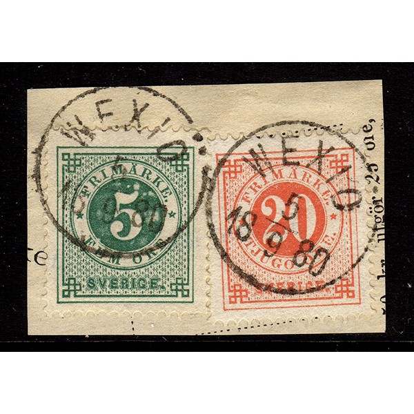 F.30+33, 5+20 öre Ziffer und Kronen im Kreis K.13, WEXIÖ 5-9-80 [G/SM]