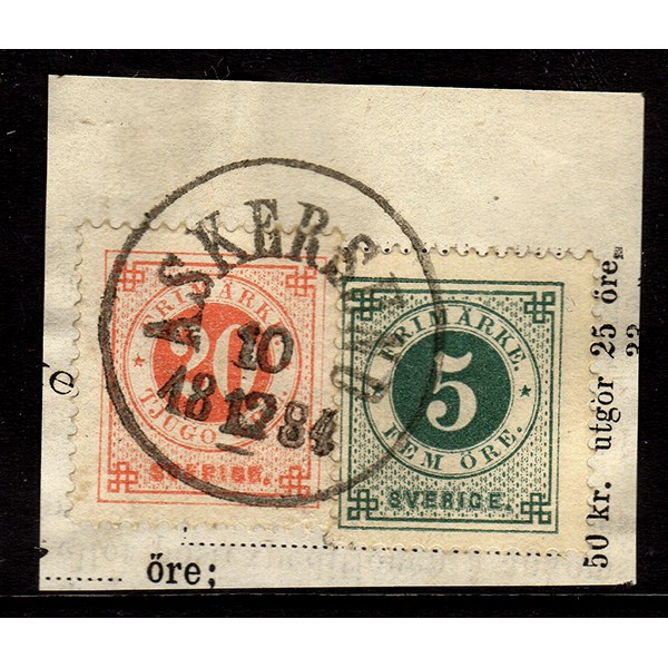 F.30+33, 5+20 öre Ringtyp T.13, ASKERSUND 10-12-84 [T/NÄ], klipp