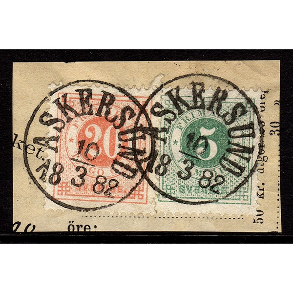 F.30+33, 5+20 öre Ringtyp T.13, ASKERSUND 10-3-82 [T/NÄ], klipp