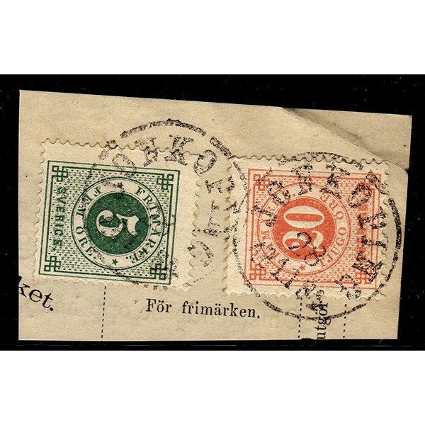 F.30+33, 5+20 öre Ringtyp T.13, JÖNKÖPING 28-11-84 [F/SM], klipp